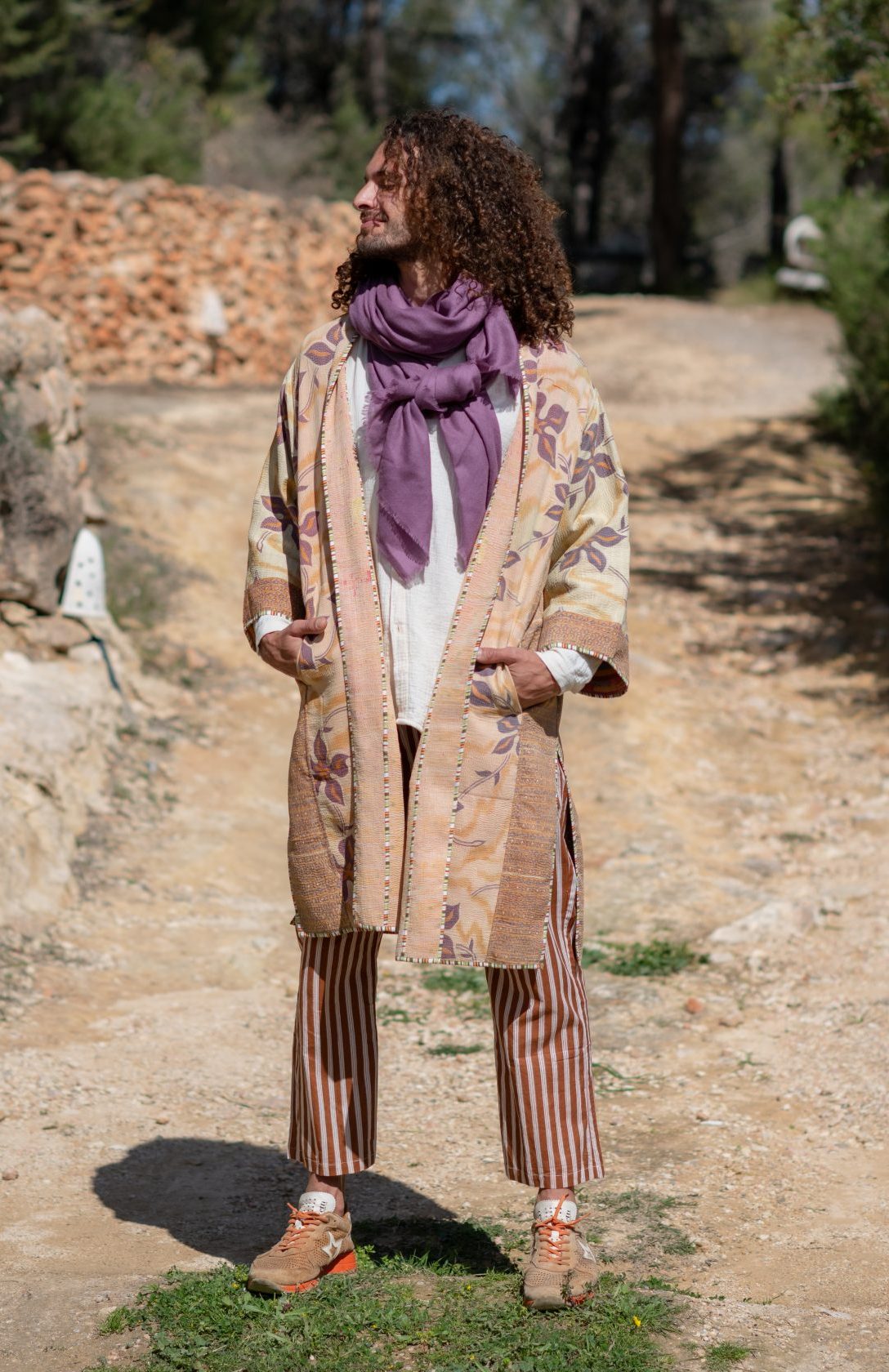 The Emile Trousers are designed for effortless wear, crafted from soft cotton with an attractive striped print. These loose-fitting trousers feature wide, straight legs and a comfortable elasticated waist at the back. The drawstring at the front ensures a perfect fit, complemented by a fly with three small wooden buttons. With a patch pocket at the back and convenient side pockets at the front, these trousers are so comfortable, you’ll never want to take them off!