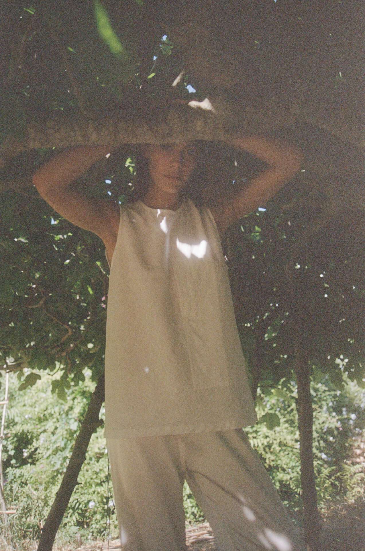 This hand spun cotton Pocket Top is both comfortable and practical!