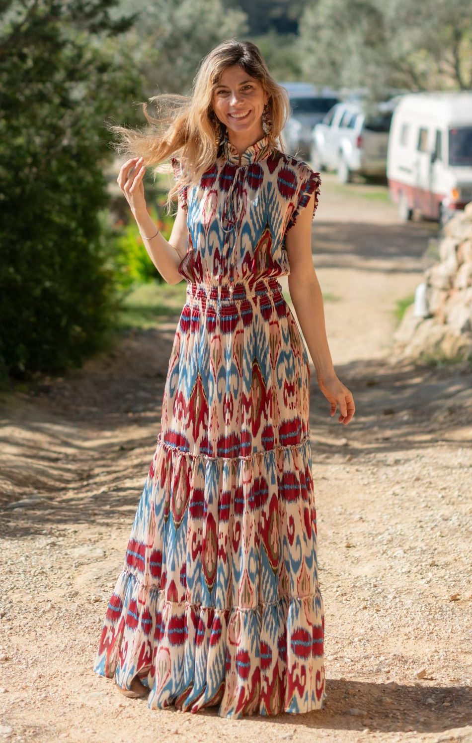 Our Sleeveless Cowgirl Dress is a 3 tiered floor length dress in a super soft cupro mix.